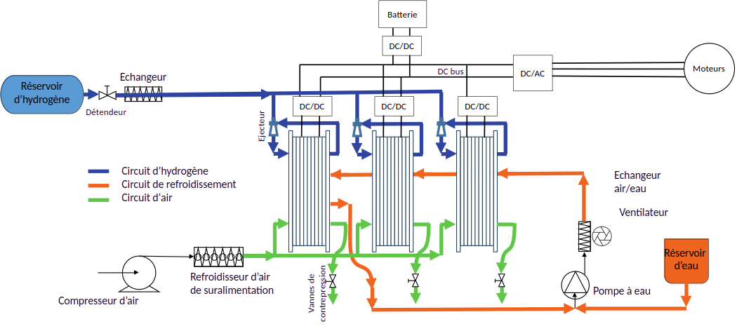 Exemple d’architecture multi-stacks avec un système de gestion thermique et d’alimentation en air commun.